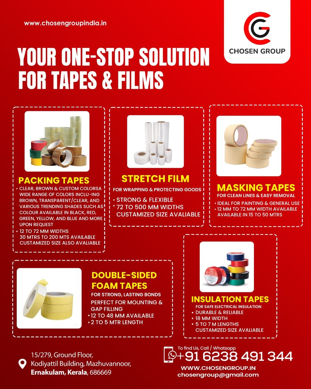 Eldho Peeter Kodiyattil and his team at Chosen Group have exceeded our expectations with their outstanding products and prompt delivery. Their insulation and masking tapes are staples in our production line, ensuring efficiency and quality in our operations.